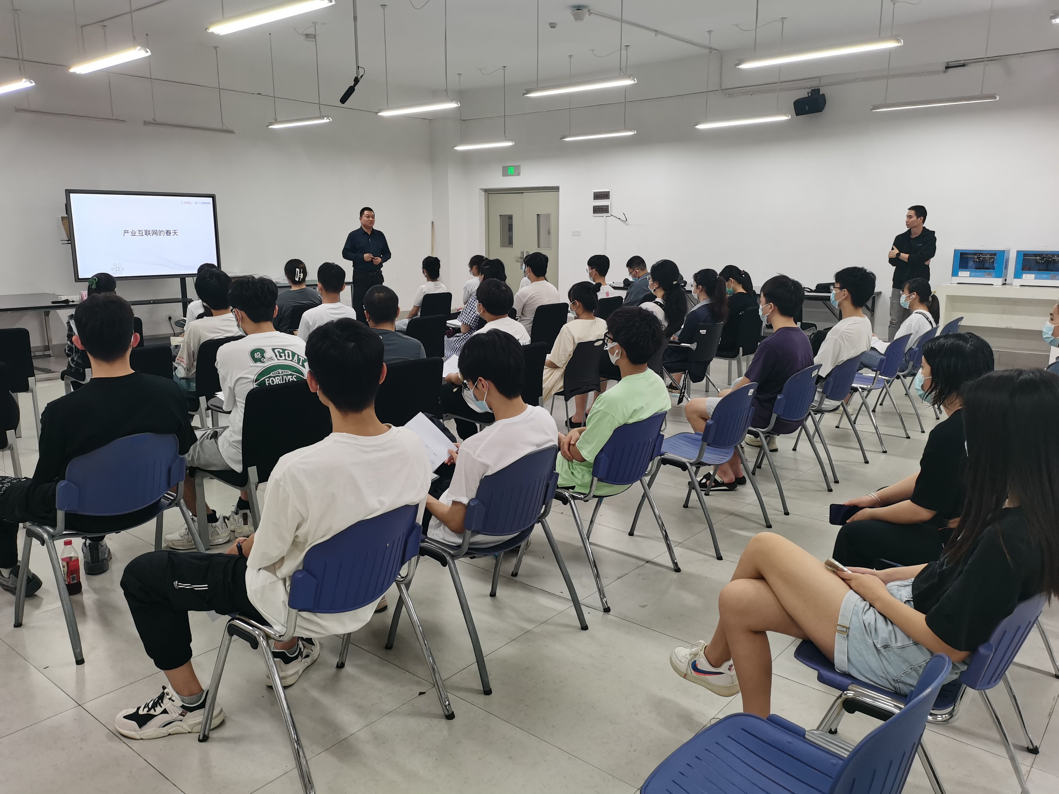 宣讲会上,企业负责人围绕政策端、需求端以及技术端等三个方面分析了中国数字化大趋势,并指出数字科技公司服务医疗健康市场的机遇与挑战。接着,从公司发展、企业文化、精英团队、办公环境、核心合作伙伴、服务客户六个方面介绍公司基本概况 ,就培训学习、职业发展、晋升渠道以及人才需求等问题与同学们进行深刻地交流。