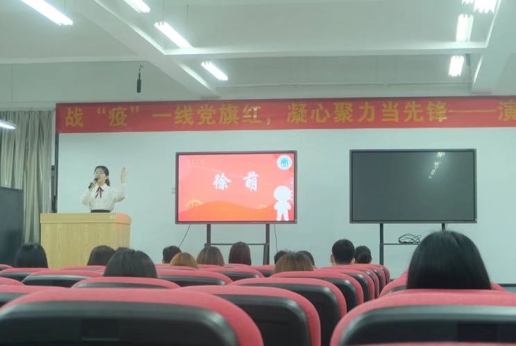 首先,参赛选手按抽签顺序依次上台进行演讲。同学们发挥各自特长,扣紧演讲主题,热情洋溢。比赛中,他们尽显青年风采,在字里行间道出了在这场防控阻击新型冠状病毒肺炎疫情中,广大党员干部带头发挥的先锋模范作用,挺身而出、英勇奋战,团结一致守护防控一线的责任和使命,展现了新时代共产党人的责任、使命和形象。