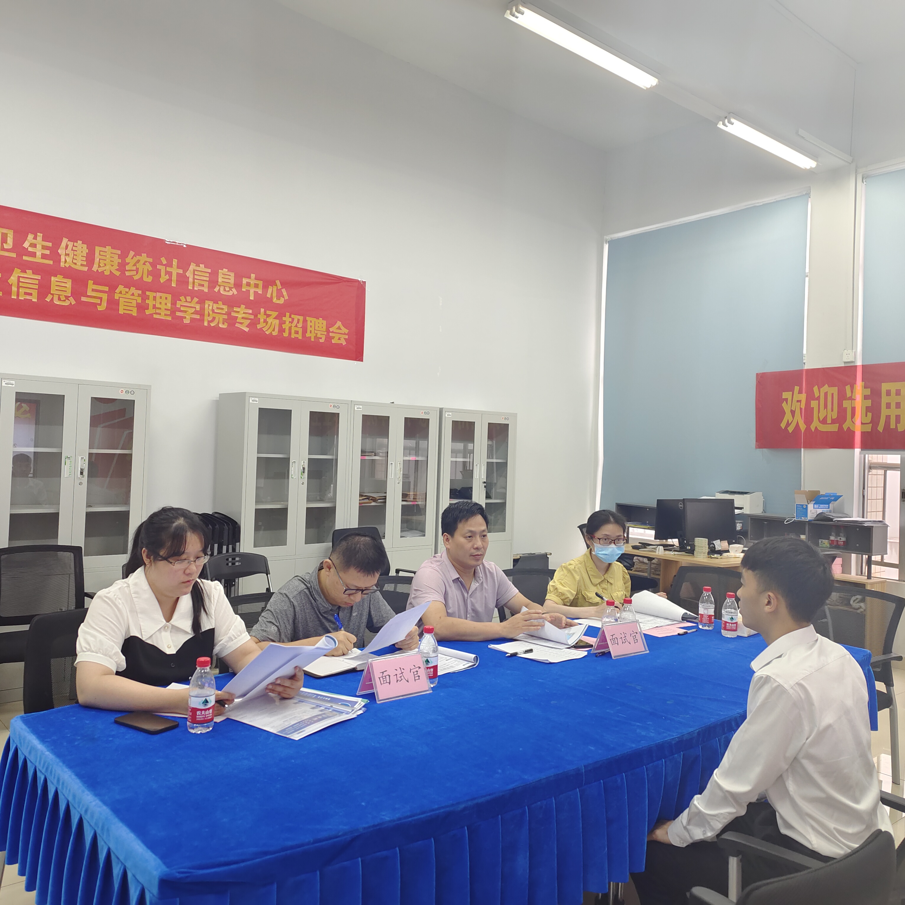 会前,双方开展了合作交流座谈会,陈榆书记首先感谢自治区卫生健康统计信息中心对公司毕业生的认可和支持,希望通过此次专场招聘会加强进一步的校政合作,促进双方的协同发展。自治区卫生健康统计信息中心副主任张杰进行了专业和岗位需求,薪资福利、晋升空间等情况介绍,何慧敏经理就公司毕业生培养方案、职业发展路径、人岗匹配情况做了详细交流。双方就后续进一步的实践基地、专业实习等校政合作达成了一致意见。座谈结束后进行了现场招聘会,共40多名毕业生参加了现场面试。本次专场招聘会共提供了15个岗位,初步达成就业意向近10人。